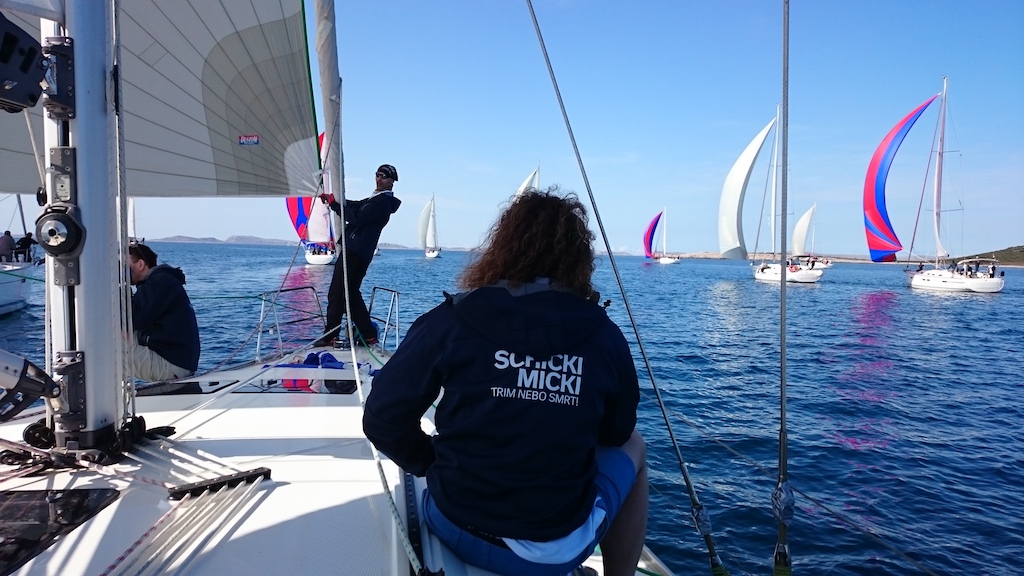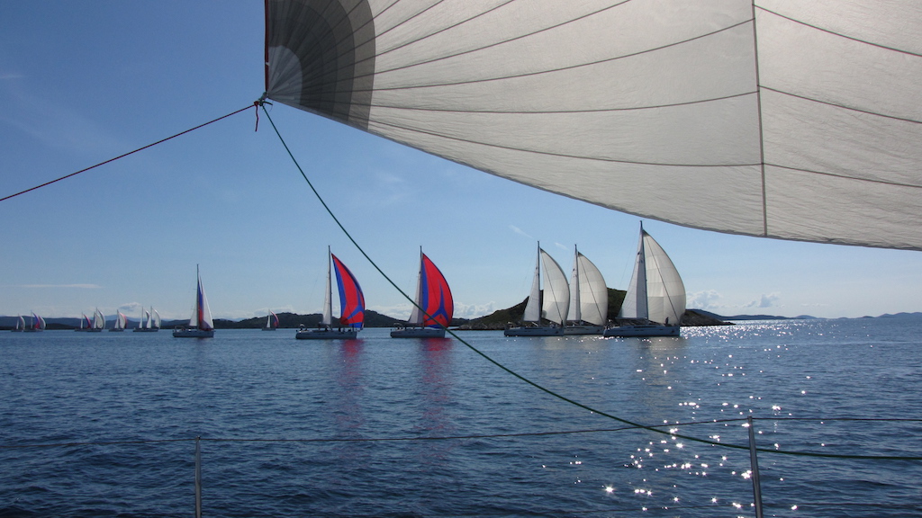 Start druhé etapy byl ráno v 8 a všechny lodě bez problémů v mírném zadním větru odstartovaly vstříc Murteru. Vzhledem k rozhodnutí, že poplujeme bez genakrů, řešily vechny posádky jak kompenzovat absenci spinakrového pně. Ten totiž na lodi chybí. Při plavbě v mírném zadním větru, na motýla, bylo k vidění spousta řešení. Část lodí se snažila peň nahradil lávkou, posádka Benemedo dokonce vyrobila peň z bambusu, který nasekali někde v okolí maríny. Všechna tato řešení se nakonec ukázala přinejmenším jako polofunkční. My jsme zůstali u konzervativního přístupu a cíp plachty udržovali ve správné pozici háčkem na mooring nebo ručně.