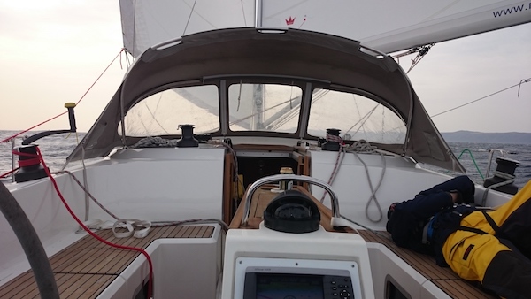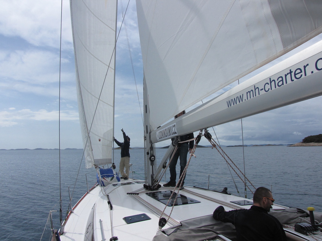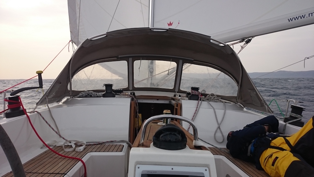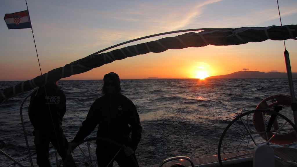 Vítr naštěstí postupně zesiloval, což odpovídalo i předpovědi, která slibovala jugo. Během dne jsme se prokousávali podél ostrova Mljet, až jsme stanuli před rozhodnutím jestli pokračovat mezi Korčulu a Lastovo nebo zamířit do Korčulské trysky. Po zvážení všech pro a proti jsme vyrazili směr Korčulská tryska a jak se později ukázalo zvolili jsme dobře. V kanále u Korčuly foukalo silněji než na otevřeném moři a jako bonus zde nebyly téměř žádné vlny. Loď letěla po klidné hladině rychlostí okolo 10 uzlů a za ní se tvořila vlna jak za motorákem. Tohle byla skutečně paráda. Později blíže u Hvaru se začaly tvořit vlny a loď při sjezdu z vlny dolů dosahovala rychlost téměř 13 uzlů. Takhle rychle jela dost možná poprvé. Během noci a nad ránem se vítr uklidnil a styl závodu se vrátil k poklidnému hledání jakéhokoliv záchvěvu ovzduší.