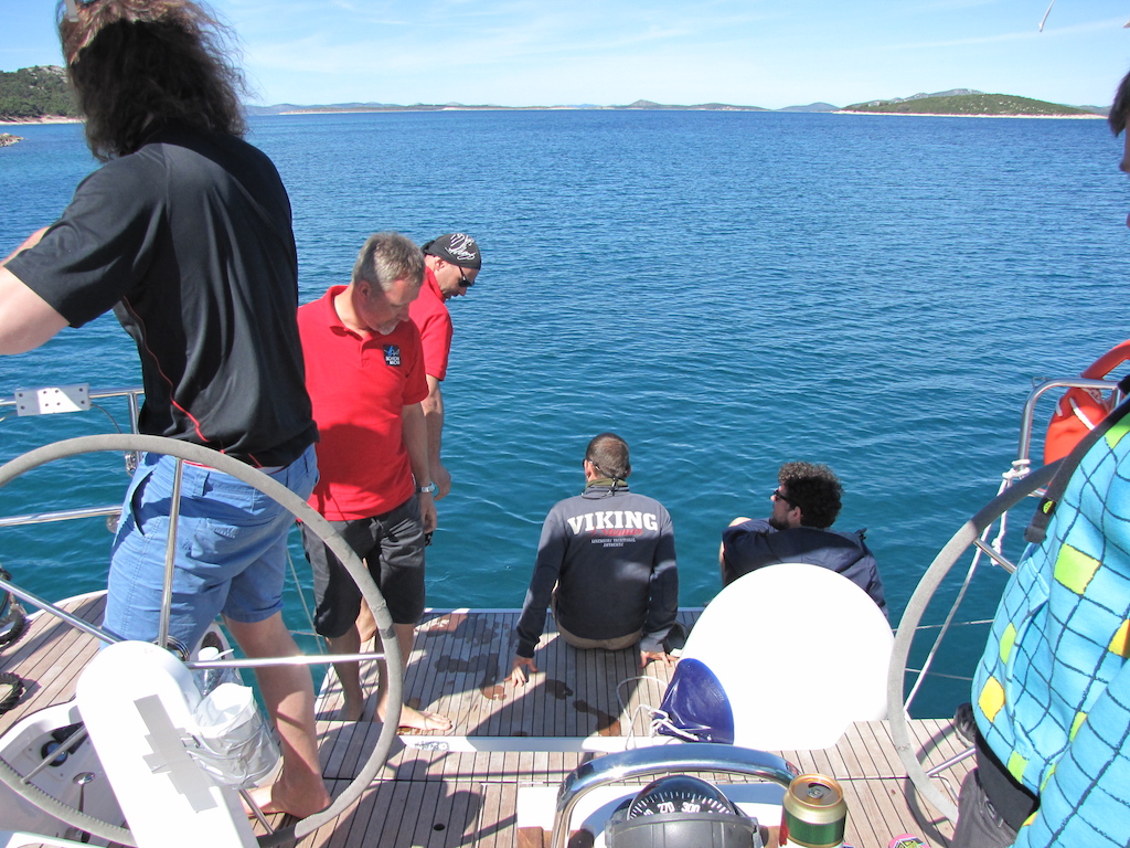Počasí v Murteru bylo typicky jarní až na drobný detail - téměř nefoukalo. Po nutných přípravách lodě jsme vyrazili z maríny na drobný tréning, ale v naprosto klidném počasí bez větru jsme pouze několikrát vytáhli genakr na stěžeň a zase spustili dolů. Odpoledne jsme se vrátili do maríny na slavnostní zahájení.