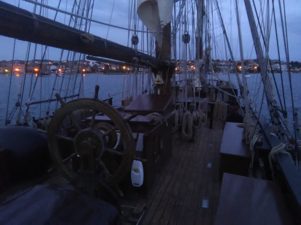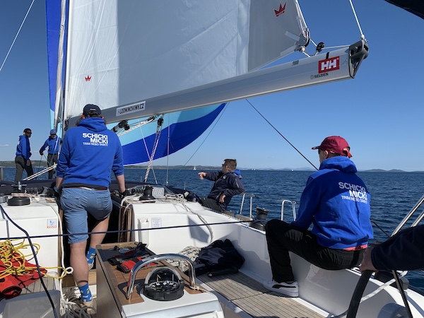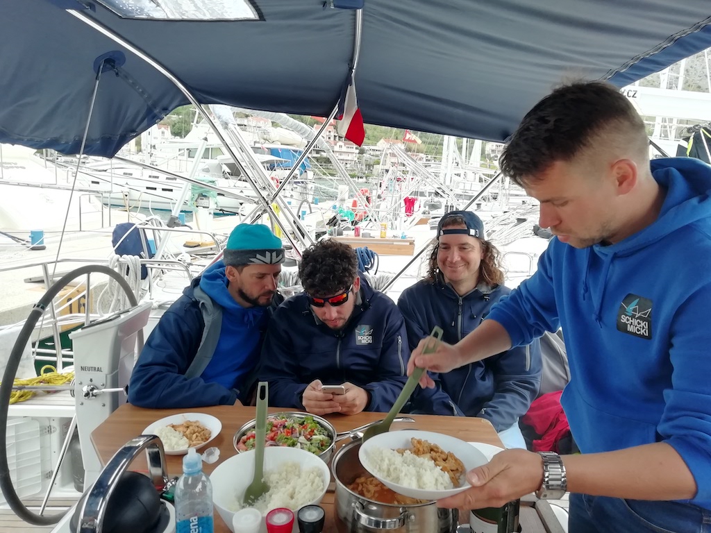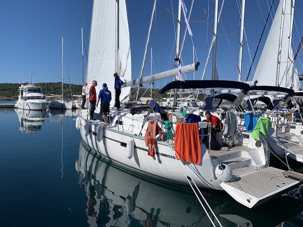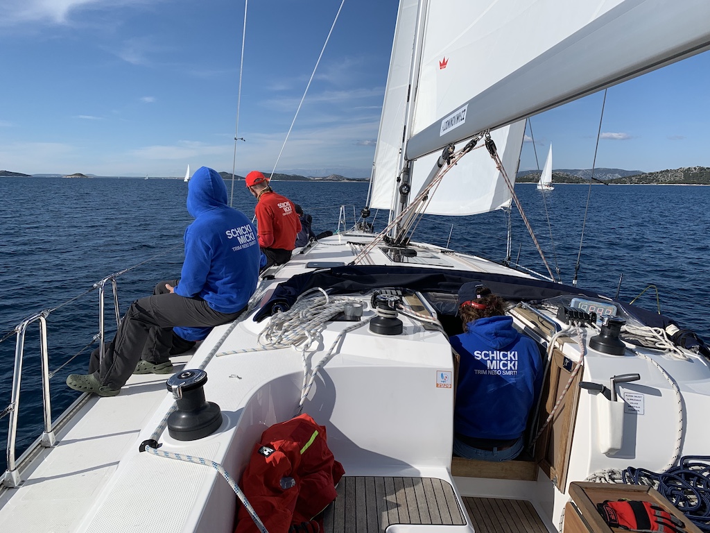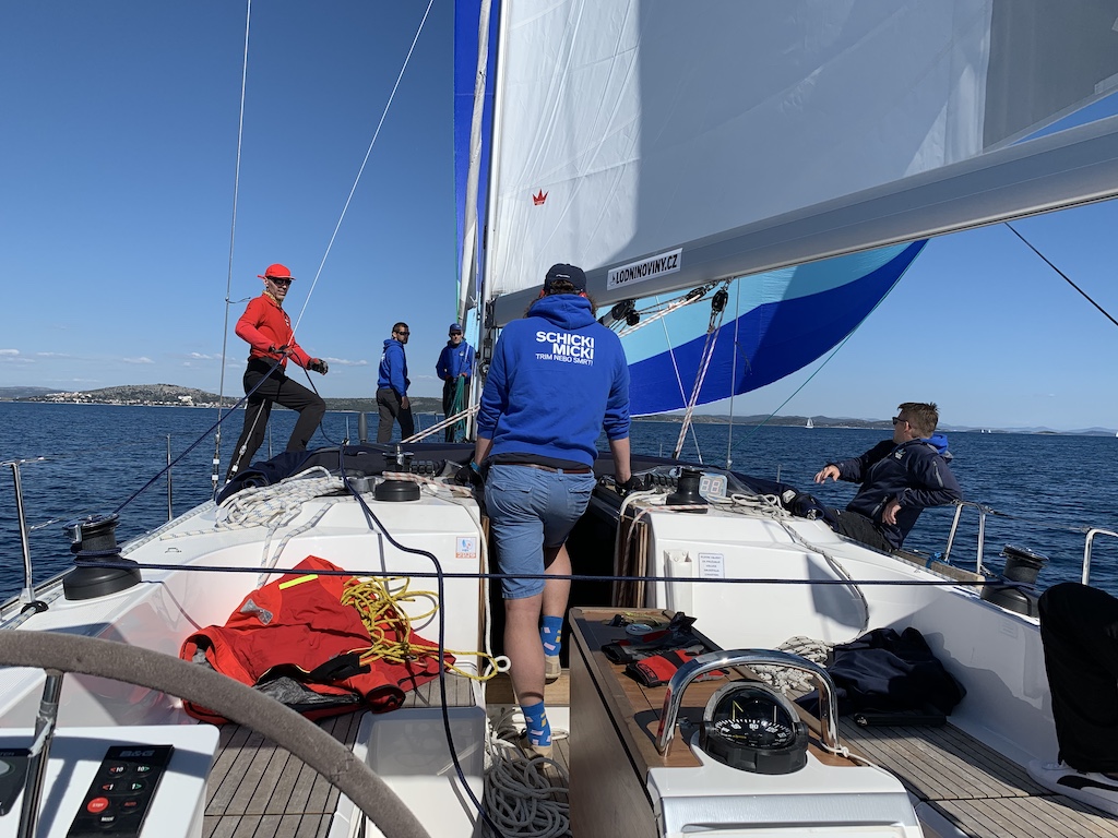 Náš tým Schicki Micki se po drobném zdržení na naší úplně nové dálnici D1, sešel na místě již v pátek během odpoledne. Loď v Pirovacu přebrala první část posádky a tak jsme hned po příjezdu zbytku, vyrazili na moře trochu si potrénovat co jsme za celý rok zapomněli. Počasí bylo krásné, ale bez větru, takže jsme několikrát cvičně vytáhli a sbalili genakr a na motor se vrátili do maríny. Následovaly další připravy lodě a večeře v místní restauraci.