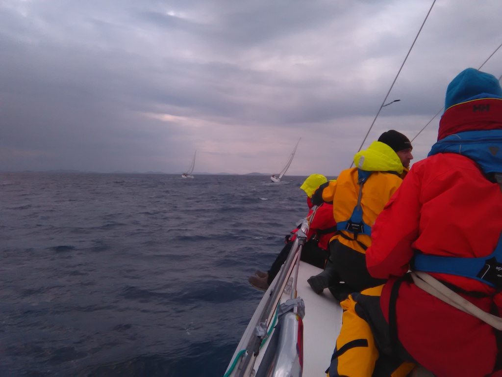 Podle předpovědí mělo jít dále jen o rychlostní závod na zadní vítr přímo do Murteru, ale Neptun tomu tak nechtěl. Stabilní vítr, ve kterém jsme rychlostí mezi 8 a 10 uzly letěli přímo do cíle, nakonec vydržel zhruba do 9 hodin ráno, kdy celé startvoní pole stihly bouřky. Průtrže mračen, kroupy a lokální flauty postupně stihly snad všechny posádky a bylo v podstatě o náhodě a štěstí kdo z nich vybruslí nejlépe. Nám se podařilo příliš neztratit a na úrovni Rogoznice jsme se drželi na průběžném 5. místě.