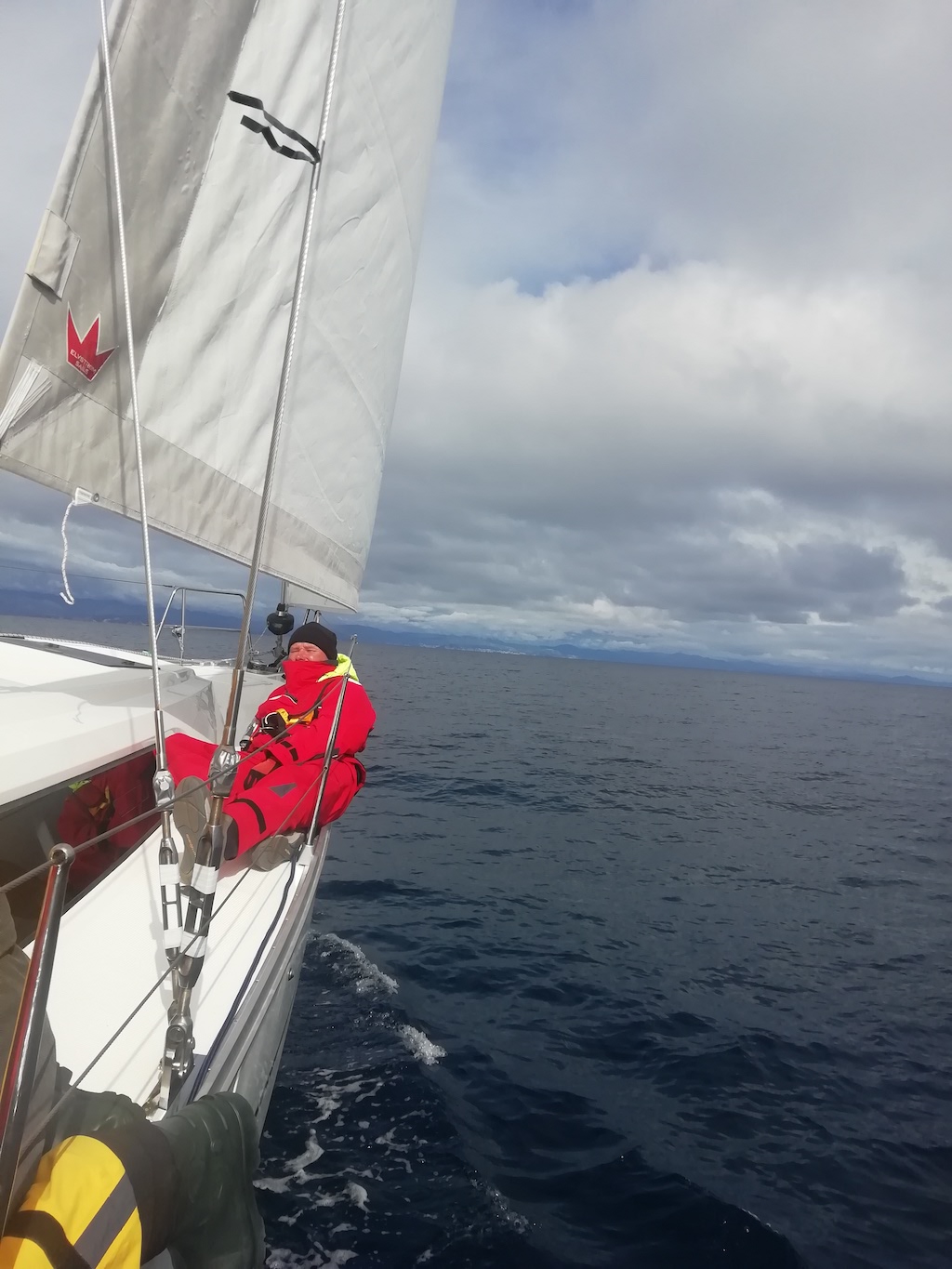 Vítr nakonec přinesla bouře, která se utvořila na pobřeží a to zvýhodnilo lodě blíže k pevnině. Přes veškerou naši snahu i ostré stoupání do cíle pod genakrem jsme nedokázali pohlídat 4 posádky a dojeli na 5. pozici. Pro nás perfektní 5. pozici. TOP5 z 45 posádek byl úspěch nad naše očekávání. V maríně jsme si dali zaslouženou horkou sprchu bez fornt a čekání, zapili úspěch a šli si všichni lehnout. Přeci jen většina z nás předchozí noc nenaspala více jak 2 hodiny.